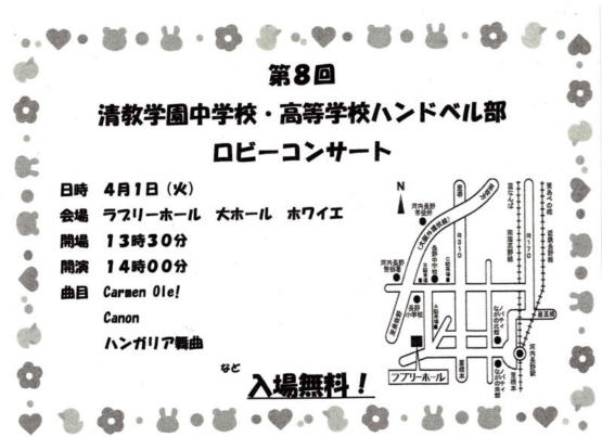 ハンドベル部は、4月1日にロビーコンサートを行います。このメンバーでの最後の演奏会となりますので