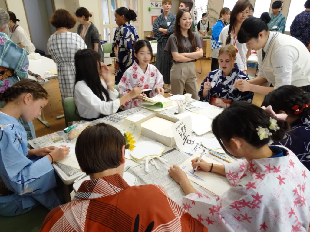 我ら地球人報告~日本文化体験~2023.09.03 国際交流委員会では、2023年7月15日(土)に姉妹校カーメル校の皆様27名(生徒21名、先生6名)をお迎えして、5年ぶりに日本文化体験(縁日)を藤井会長、国際交流委員19名,留学帰国後の生徒さん2名で開催しました。 カーメルの皆様は、浴衣に着替えて、射的・千本引き、和菓子、書道、茶道を体験しました。七夕コーナーでは短冊に願いを書いて笹に飾りつけしました。短い時間ではありましたが、カーメルの皆様と楽しく交流が出来ました。 一覧へ